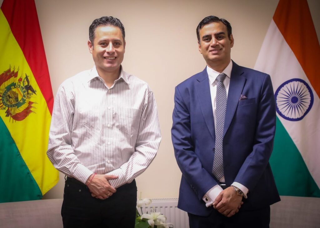Éxito Noticias, 13 de noviembre 2025.- El vicepresidente del Estado, Edmand Lara Montaño, y el embajador de la India en Bolivia, Rohit Vadhwana, sostuvieron una reunión destinada a consolidar los lazos bilaterales y promover una cooperación integral enfocada en la modernización tecnológica y el desarrollo social.
