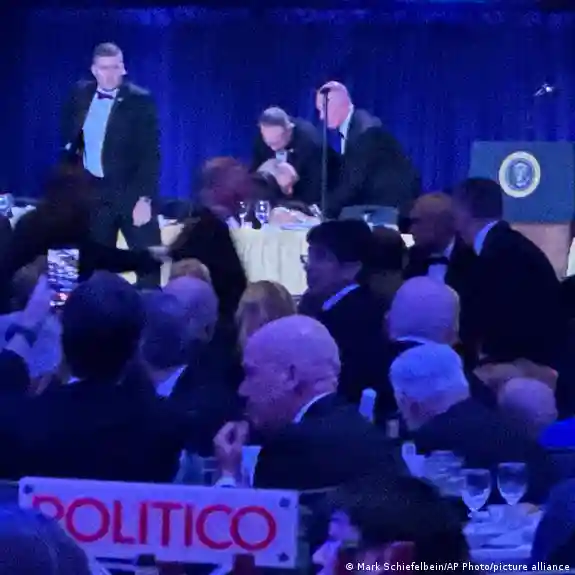 Durante el confuso incidente, los asistentes a la cena dejaron de hablar de inmediato y la gente comenzó a gritar: “¡Agáchense, agáchense!”, detalló la agencia Reuters.