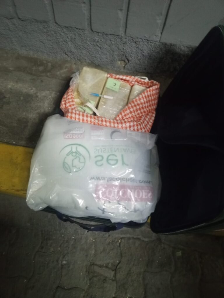Efectivos del Batallón de Seguridad Física Estatal realizaron la primera revisión y concluyeron que el contenido podía tratarse de sustancias controladas. Tras la intervención de la FELCN, las pruebas de campo confirmaron la presencia de droga en uno de los paquetes.