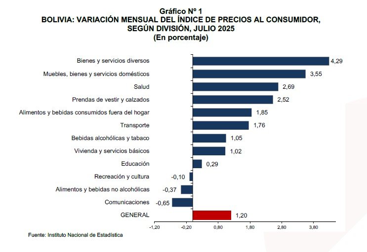 El incremento de 1,20% del IPC registrado en julio 2025, se explica principalmente por la