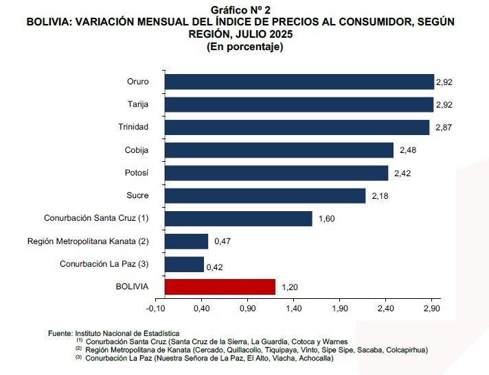precios reportado en las ciudades capitales y conurbaciones: Oruro 2,92%; Tarija 2,92%;