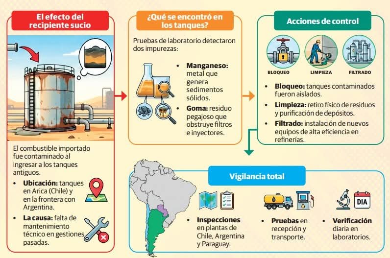 En paralelo, el sector agroenergético rechazó que el etanol sea causante de sedimentos o fallas mecánicas. Aseguró que se trata de alcohol anhidro de alta pureza, utilizado en el país desde hace siete años y en mezclas inferiores al límite permitido por la normativa.