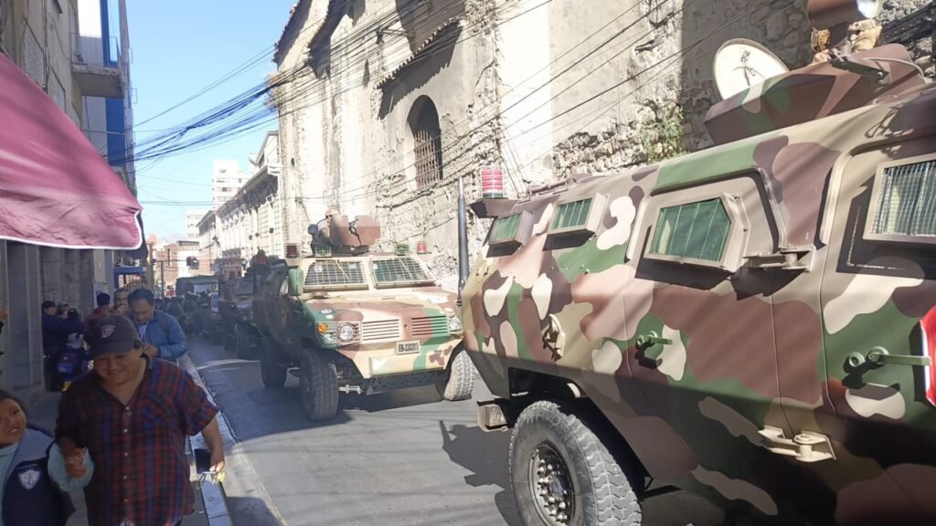 Éxito Noticias, 26 de junio 2024.- El Comandante General de las Fuerzas Armadas, luego de haber militarizado y tomado plaza Murillo, salió de la tanqueta en el que se encontraba blindado y en un breve contacto con los medios de comunicación dijo que los militares están “molestos” y no “dejarán que se humille al Ejército”.